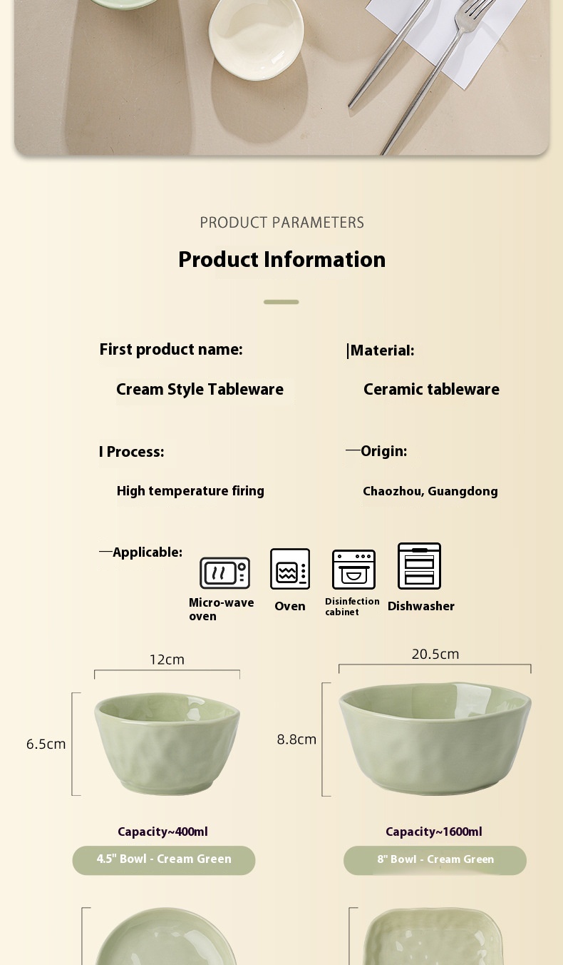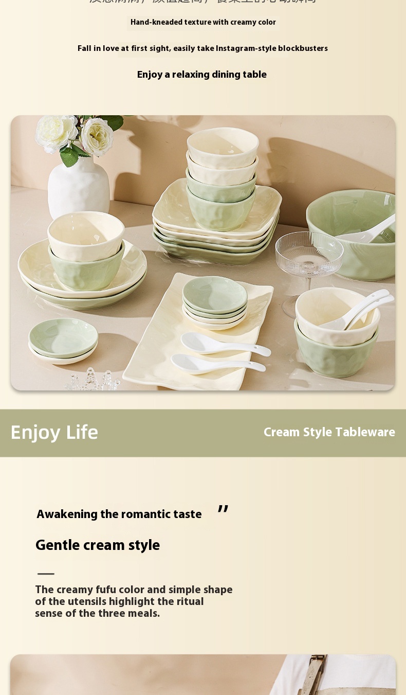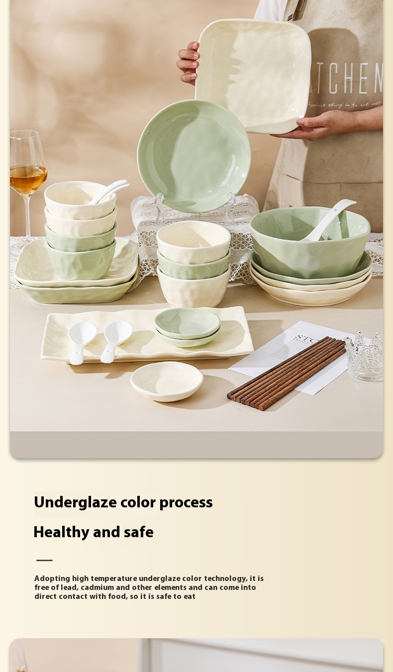 Ceramic Bowl Suit Household Minimalist Cream Wind Tableware Set Plate Cutlery